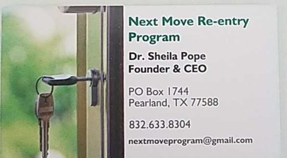 Today, I am proud to announce, my nonprofit celebrated its first year of existence. The purpose of The Next Move Re-entry Program 501c3 to help ex-offenders meet the legal requirement for DWI Court Required Classes, start their own companies, and to reconnect with their families. My company, The Resource Center, provides Texas State approved DWI Education Program. I am the administrator and administer for two programs.